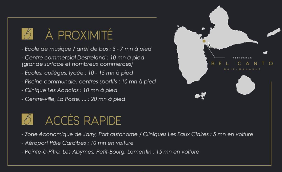 Profitez également des avantages de l'architecture bioclimatique et de l'emplacement privilégié de la résidence. Ne manquez pas cette opportunité unique d'acquérir un appartement d'exception dans l'une des adresses les plus prisées de Baie-Mahault.