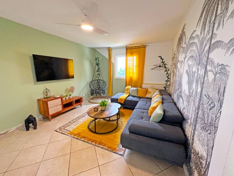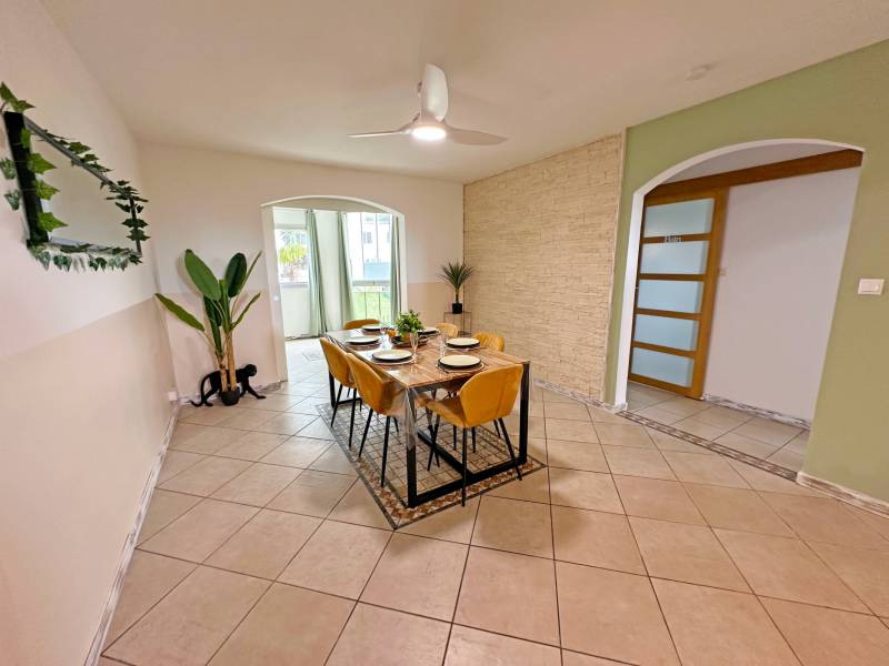 LaKaz Société Immobilière vous propose à la vente un appartement T3/4 de 82 m2 habitables, situé au rez-de-chaussé dans une résidence calme et sécurisée à Sainte-Clotilde.
