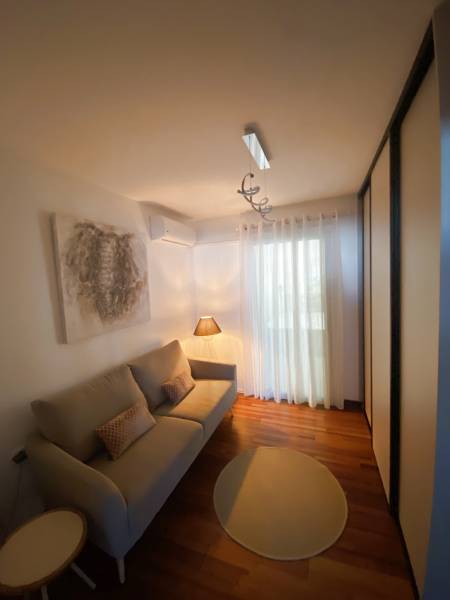 L'appartement possède un salon, un salle à manger, une cuisine premium équipée, 3 chambres dont une master room, un bureau, 2 salles de bain et deux WC.