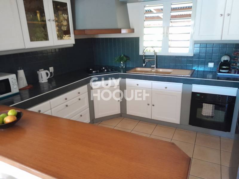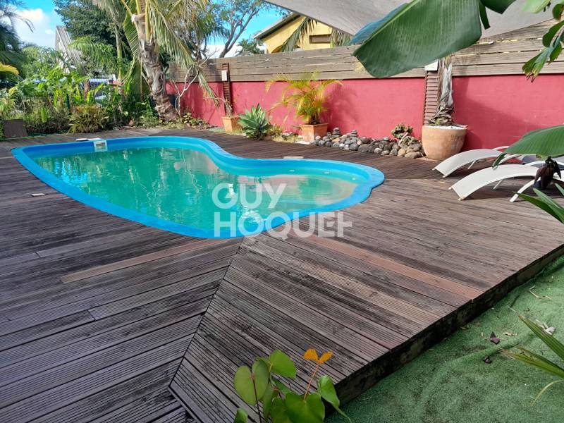 Située dans un lotissement calme et recherché à proximité immédiate du centre ville et de toutes ses commodités (écoles, commerces, cabinet médical, piscine, voie rapide) maison de plain pied d'environ 177 m² utiles édifiée sur une parcelle de 451 m². Cette maison comprend : une cuisine ouverte sur un séjour avec varangue, 3 chambres, une salle de bains, un wc, une suite parentale avec salle d'eau et wc, une varangue de 46 m² avec cuisine d'été, un garage de 20 m², une piscine au sel. Possibilité de stationner plusieurs véhicules. La maison est équipée de climatiseurs dans toutes les pièces et est raccordée au tout à l'égout. aucun travaux à prévoir. Honoraires à la charge du vendeur. Vivien Parolari (EI) Agent Commercial - Numéro RSAC : 879158327 - Saint Denis de la Réunion.