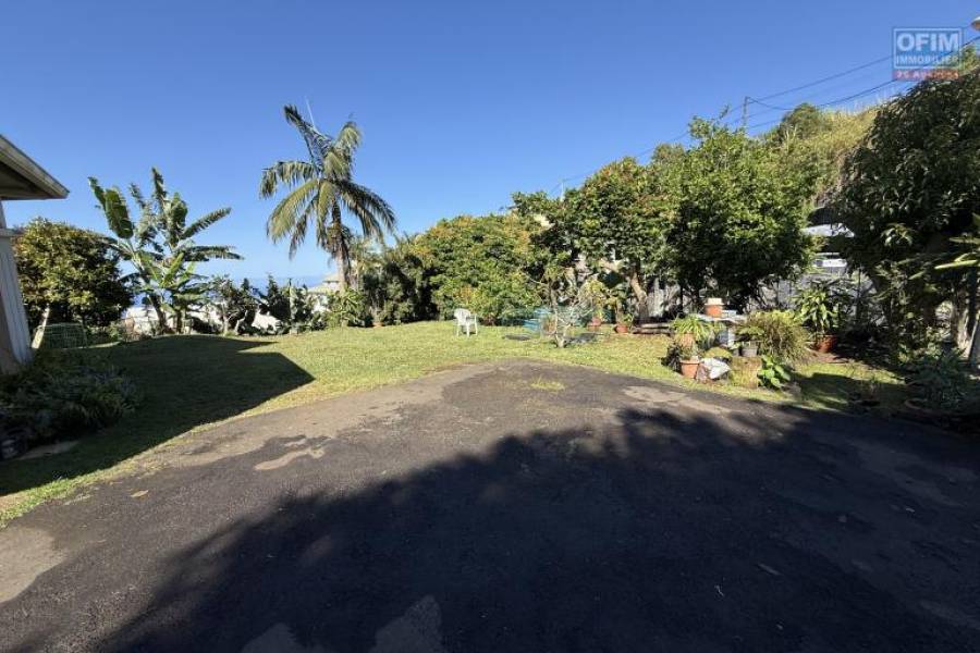 Grande propriété F8 en R+1 avec garage sur 1004 m² de terrain , située à 500 m d'altitude à 10 minutes de l'hyper centre d'Etang Salé Les Hauts, en impasse, avec vue océan imprenable.