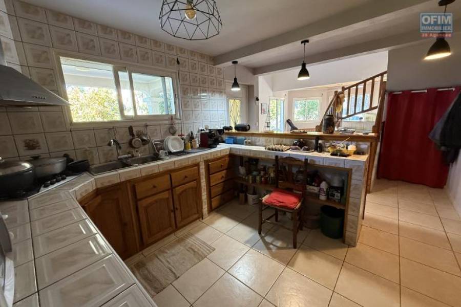 L'agence OFIM d'Etang Salé Les Hauts vous présente à la vente cette belle propriété F8 en R+1 avec garage, située à 500 m d'altitude, en impasse, une tranquillité absolu avec vue océan dans un écrin de verdure, à 10 minutes du centre-ville, parfait pour une grande famille, avec transport scolaire proche, le tout implanté sur un terrain plat de 1004 m² borné sur lequel il est possible de construire une piscine avec vue océan. Caractéristiques du bien : - Maison de Type F8 en R+1 de 155 m² habitables. - Garage de 40 m² avec volet roulant électrique, possibilité de garer deux autos et d'avoir son atelier. - Varangue : 32 m² et balcon de 5,84 m². - Terrain borné de 1004 m² (moins une servitude de passage d'environs 100 m² en bordure de terrain), en zone urbaine du PLU avec permis de construire, plat, arboré (goyavier, goyave, bananier, letchi, avocat, longanis, Zévi, orange, pitaya, cerisier du Brésil, etc) et fleuri avec vue océan imprenable. - Parcs poules en dur et sous tôle sur le coté de la maison qui peuvent être conservés en l'état ou aménager selon vos envies et en contre bas du terrain sur une petite surface en bois sous tôle. - Bassin à poissons hors sol en dur de 10 m² environs. Composition de la maison Au Rez-de-Chaussée : - 3 chambres ventilées de 10,80 m², 10,75 m² et 8,77 m² - 1 séjour de 23,78 m² avec cheminée et escalier - 1 une salle d'eau/buanderie/WC de 10 m² - 1 salon/salle à manger de 29,12 m² - 1 cuisine de 10 m², avec accès salon et séjour - 1 varangue de 32 m² À l'Étage : - 3 chambres de + de 12 m² dont une avec balcon de 5,84 m et pleine vue océan et montagne - 1 une salle de bains avec WC de 11,80 m² avec baignoire d'angle - 1 mezzanine de + de 10 m² Détails supplémentaires : - Places de stationnement intérieur - Portail électrique - Chauffe-eau solaire - Menuiserie aluminium dans toute la maison. - Taxe foncière 2230 € - Fosse septique en dur à l'ancienne fonctionnant parfaitement. - Maison achevée en 2004, entièrement faite en auto construction par le propriétaire actuel pendant une durée 3 ans. - Construction piscine possible avec vue océan Commission d'agence à la charge du vendeur. Pour plus d'informations ou pour planifier une visite, n'hésitez pas à contacter François HART (agent commercial) au [coordonnées réservées] ou par email à [coordonnées réservées] Honoraires à la charge du vendeur 8A71722, Numéro de mandat: 2325ESH Tél. commercial: [coordonnées réservées]