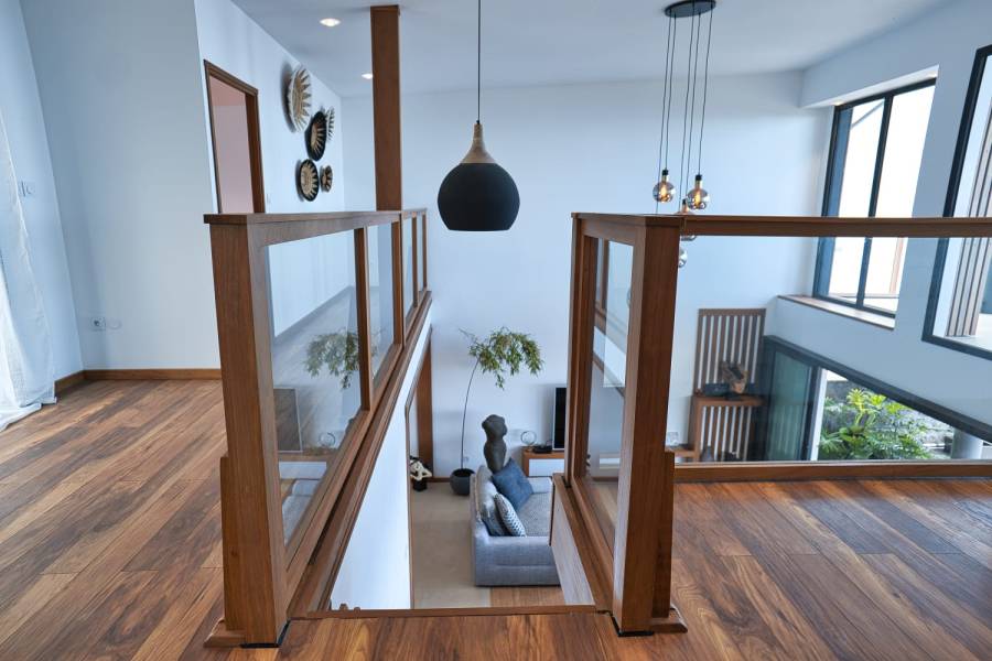 D’une surface habitable de 160 m2, cette maison vendue entièrement meublée se compose au rez de chaussée d’une cuisine aménagée et équipée sur mesure, ouverte sur un vaste séjour lumineux avec une belle hauteur sous plafond donnant directement sur une grande varangue. Elle dispose également d'une suite parentale avec salle d'eau et wc séparé. L'étage comprend deux chambres spacieuses, d'une salle d’eau, d'un WC et de deux terrasses. Toute la maison est baignée de lumière. La qualité des matériaux utilisés et les finitions impeccables réalisées par un menuisier confèrent à cette villa un confort optimal et une atmosphère élégante.