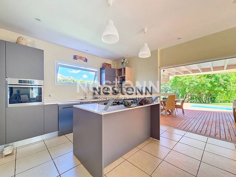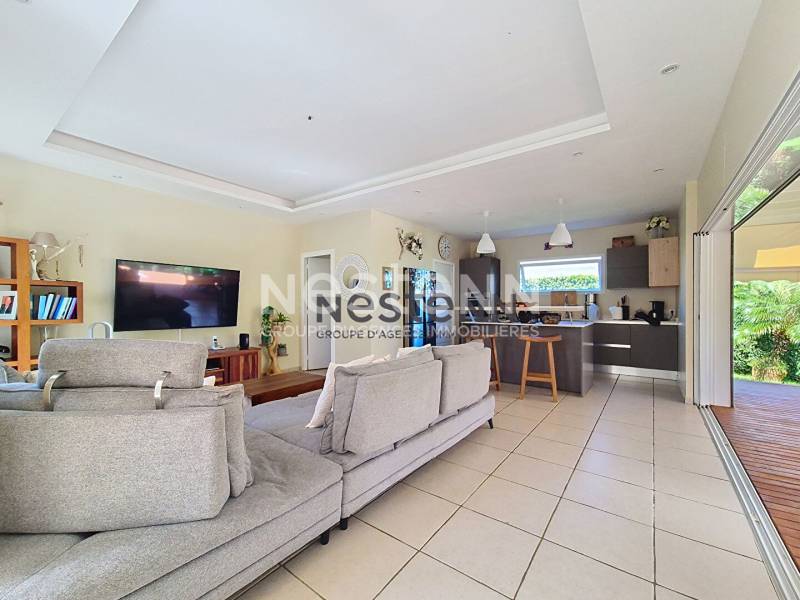 A vendre à Petit-Bourg une villa de 3 chambres située dans un lotissement privé au coeur d'un quartier résidentiel recherché. Cette maison d'architecte moderne et lumineuse offre une superficie de 102 m² sur un terrain soigneusement aménagé. Cette maison se compose d'un espace de vie convivial comprenant un séjour spacieux ouvert sur une cuisine contemporaine équipée et son cellier attenant. Un grand couloir lumineux dessert deux chambres confortables, chacune avec sa salle d'eau privative. La suite parentale séduit par sa chambre élégante, sa salle d'eau avec double vasque et son dressing. Toutes les pièces principales s'ouvrent sur une vaste terrasse bordant la piscine, parfaite pour profiter pleinement du climat tropical et des moments de détente en famille ou entre amis. Au fond du jardin , un cabanon pouvant servir de bureau. Le prix de vente est de 585 000 euros HAI, les Honoraires d'agence sont à la charge du vendeur. DPEG : A Contactez nous pour plus d'informations ou réserver votre visite , à l'agence NESTENN Jarry au [coordonnées réservées] ou Sophie au [coordonnées réservées]. Sophie DRAGIN (EI) Agent Commercial - Numéro RSAC : 382030849 - Pointe à Pitre.