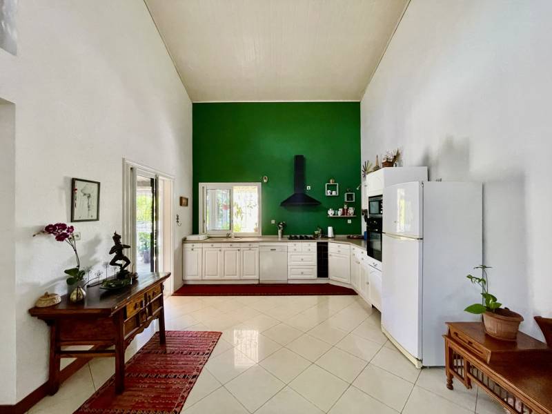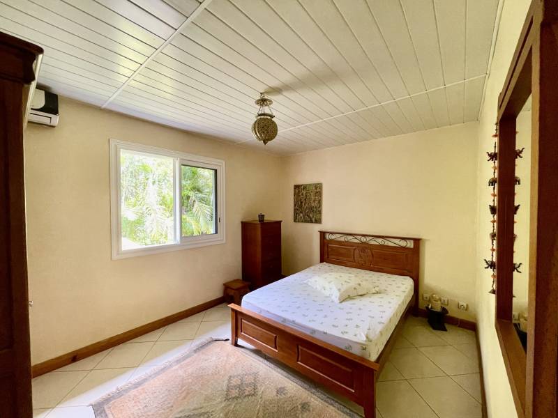 À l’extérieur, vous profiterez d’un jardin tropical agrémenté d’arbres fruitiers (manguiers, avocatiers, longaniers, cocotiers, papayers…), d’une piscine à coque au sel (40 m³), clôturée en haricot de 10 × 4 m avec margelles en pierre de Bavière, d’un jacuzzi chauffable, ainsi que d’une dépendance en dur, déjà raccordée à l’eau et à l’électricité, qui reste à terminer et offre un fort potentiel d’aménagement (studio indépendant, bureau ou atelier).Un garage double de 38,85 m2 et un local technique complètent l’ensemble.