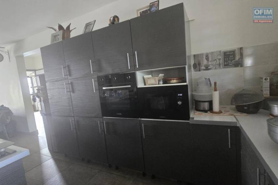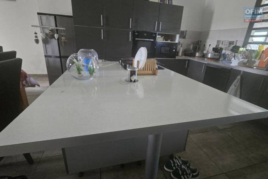 Située dans un secteur calme et résidentiel, cette belle villa moderne construite en 2016 offre de très belles prestations et un excellent confort de vie. Caractéristiques principales : Surface habitable : 130 m² Terrain : 600 m² entièrement clôturé et entretenu Piscine à coque de 3,5 x 6,4 m 4 chambres climatisées de 13,5 m² avec placards intégrés en mélaminé (1,8 x 2,6 m) et luminaires 2 salles de bain 2 toilettes séparés Mezzanine moderne de 18 m² avec escalier design Menuiseries aluminium gris anthracite, portes vitrées Pièces de vie : Séjour / salle à manger / cuisine de 48 m² lumineux et ouvert Cuisine équipée avec four, lave-vaisselle, four micro-ondes et îlot central Terrasse couverte à l’arrière de 36 m² avec cuisine extérieure Terrasse à l’avant idéale pour détente et réception Autres atouts : Fosse septique Garage couvert pour 2 véhicules Jardin et cour clôturés et entretenus ???? Prix : 361 702,16€ ???? Emplacement : Quartier calme, proche de toutes commodités (écoles, commerces, axes routiers, mer). Honoraires à la charge du vendeur 2A71709, Numéro de mandat: 1360 Tél. commercial: [coordonnées réservées]