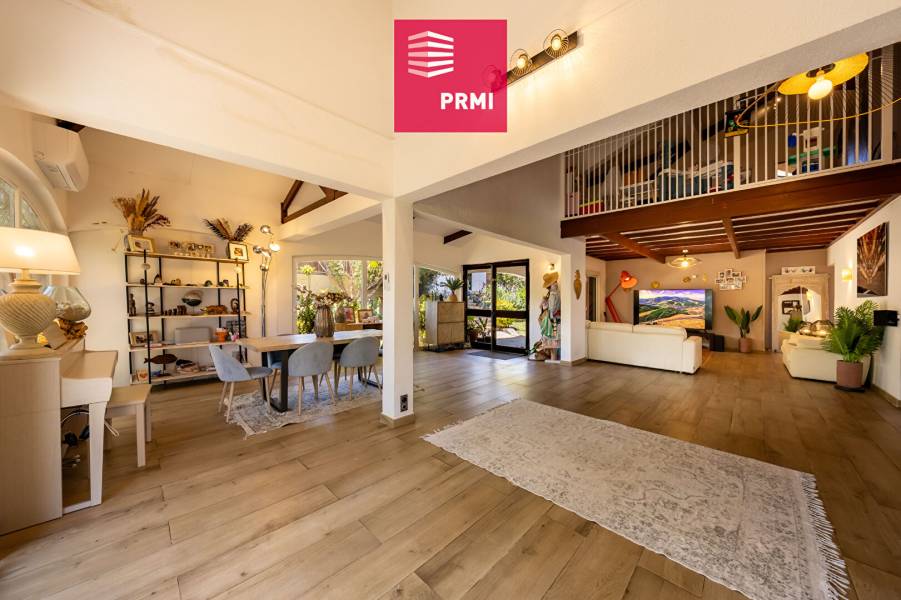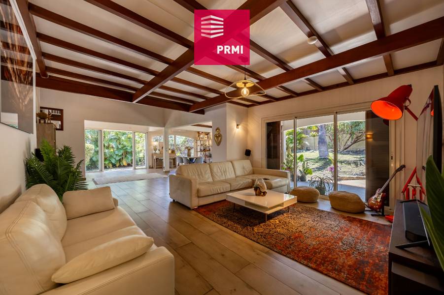 EXCLUSIVITE PRMI ! L'agence PRMI vous propose cette superbe villa familiale de plus de 250 m² habitables (environ 400 m² utiles), implantée sur une grande parcelle arborée de + de 1 300 m², au coeur d'un environnement résidentiel paisible et verdoyant de Saint-Gilles-les-Bains. Offrant des volumes généreux, une belle luminosité et un excellent état d'entretien, cette propriété conjugue confort moderne et charme tropical. Dès l'entrée, la pièce de vie séduit par ses proportions exceptionnelles d'environ 90 m². Les larges ouvertures prolongent l'espace sur la nature environnante et créent une atmosphère intimiste et apaisante, idéale pour la vie de famille. La cuisine américaine de 18 m², entièrement équipée et ouverte sur les espaces salle à manger et varangue, offre une circulation fluide et une ambiance conviviale. L'espace nuit en rez-de-chaussée : comprend une suite parentale de 17 m² avec salle d'eau/wc attenante, ainsi que trois autres chambres spacieuses de 14 à 20 m², dont une communicante offrant deux espaces distincts. Une salle de bains avec wc et un wc indépendant complètent ce niveau. A l'étage : une vaste mezzanine de plus de 70 m² (dont 36 m² à + de 1,80 m) offre un espace modulable à souhait : salle de jeux, bureau, coin détente ou chambres supplémentaires selon les besoins. Une quatrième chambre de 36 m², actuellement aménagée en deux espaces distincts, vient compléter ce niveau. La conception du rez-de-chaussée comme de l'étage permet d'envisager aisément la création de deux chambres supplémentaires et/ou l'ajout de deux salles d'eau, offrant un potentiel d'évolution rare ! A cela s'ajoute un bungalow indépendant d'environ 20 m², idéal pour accueillir famille ou amis. Les extérieurs appellent à la détente : une des varangues donne sur un très bel espace piscine et son jardin paysager. La parcelle soigneusement entretenue, déploie une ambiance tropicale apaisante. Côté confort, tout a été pensé : climatisation dans toutes les pièces, buanderie, garage, arrosage automatique, chauffe-eau solaire et panneaux photovoltaïques. Située à proximité immédiate des écoles, commerces et commodités, à seulement 5 minutes du centre de Saint-Gilles et de la Route des Tamarins, cette villa offre un cadre de vie rare où tranquillité et praticité se conjuguent à la perfection. Une belle propriété familiale aux prestations de qualité et sans travaux à prévoir est à découvrir sans tarder avec l'agence PRMI. §§§§ Visite virtuelle sur demande §§§ Pour plus d'informations ou pour organiser une visite, contactez Jennifer Berthelot au [coordonnées réservées] ou par mail à [coordonnées réservées]