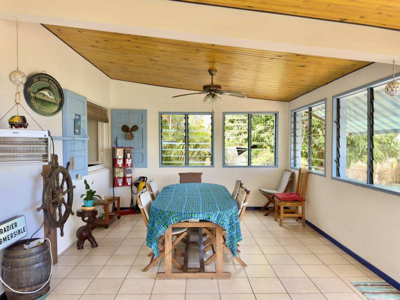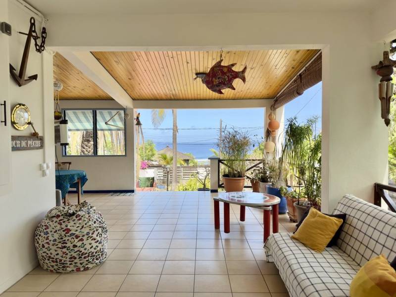 Composée d'un rez-de-chaussée et d'un étage totalement indépendant, cette propriété polyvalente comprend 5 chambres, 2 salles d'eau, 2 WC séparés, ainsi que deux varangues offrant une splendide vue sur l' Océan Indien.