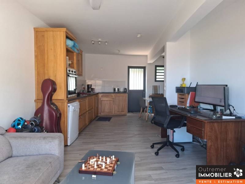 ETANG ST LEU Située dans un environnement calme à 350m d'altitude , cette maison jumelée en duplex se compose en RDC d' un séjour donnant sur une cuisine ouverte entièrement équipée, d'une suite parentale avec salle d’eau privative et WC séparé.