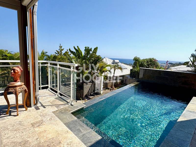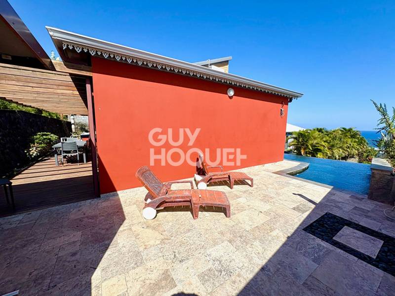 L'agence Guy Hoquet de Saint-Pierre à l'honneur de vous proposer en exclusivité cette magnifique Villa de plain-pied au standing irréprochable situé sur la commune de Grands-Bois. Avec ses 140 m² habitables sur son terrain de 412 m², vous tomberez sans aucun doute sous le charme de ses prestations de qualités avec sa vue mer imprenable. L'intérieur se compose de 4 chambres, d'une salle d'eau, d'un WC et d'une cuisine entièrement aménagée et équipée ouverte sur le salon avec accès direct à la varangue de 25 m² donnant sur la piscine à débordement face à la mer. De plus vous trouverez à l'étage une mezzanine de 23 m² surplombant le salon. A l'extérieur, en plus de la terrasse en travertin équipée de volets roulants et de la piscine au sel avec douche extérieure, vous disposerez d'un jardin avec coin barbecue et d' un accès parking avec un abri pouvant accueillir plusieurs véhicules. Le bien est également équipé de panneaux solaires avec batterie et revente à EDF. Venez découvrir sans tarder ce bien d'exception au calme, sans vis à vis et à deux pas de toutes commodités. Les informations sur les risques auxquels ce bien est exposé sont disponibles sur le site Géorisques : www.georisques.gouv.fr Les honoraires sont à la charge du vendeur. Référence annonce : 3256 Ghislain THIOLLIER (EI) Agent Commercial - Numéro RSAC : 2021AC00068 - SAINT-PIERRE.