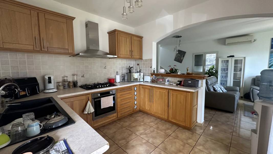 Au rez-de-jardin, un grand séjour climatisé se connecte harmonieusement à la cuisine principale, à la salle à manger et à un coin salon cosy avec vue sur le jardin, idéal pour les moments en famille ou entre amis.