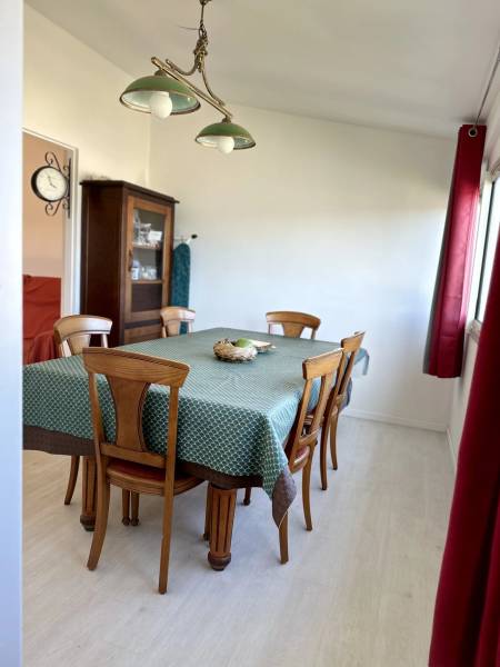 Le séjour lumineux, organisé en deux parties, offre une vue mer, idéale pour profiter des instants de détente en famille. La maison dispose d'une cuisine fonctionnelle fermée, parfaite pour cuisiner en toute tranquillité. La suite parentale comprend un coin salle de douche et un espace dressing.
