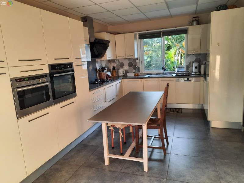 Trs peu courant actuellement dans le secteur de St Suzanne, proximit du centre-ville et de toutes les commodits, moins d'une minute de la 4 voies, grande villa F8 de 246m2 avec piscine au sel de 32m2 sur un terrain de 983m2, avec un sjour de 57m2 au rez-de-chausse, une cuisine quipe de 32m2 et 4 chambres (de 9m2, 11m2, 12m2 et 14m2).Salle de bain avec douche italienne, WC et garage ferm, buanderie et vranda . A ltage (comble) sjour de 43.7m avec cuisinequipe, 2 chambres de 9.52m et 14.50m salle de bain et wc avec escalier ,terrasse indpendant (possibilit de transformer en f3 ). Sur le toit panneau solaire et chauf eausolaire .\nCe bien vous est propos au prix de 520000 . honoraires la charge vendeur.Infos/visites contactez Seusse Klbert EI agent mandataire indpendant du rseau TEKA IMMO.Rf : annonce 6527Tel: [coordonnées réservées]Inscrit au tribunal de SAINT DENIS sous le n 510 903 883.Barme des honoraires visible sur notre site internet TEKA IMMO.https://tekaimmo.fr/honoraires.pdfLes informations sur le risques auxquels ce bien est expos sont disponibles sur le site Gorisques: www.georisques.gouv.frAnnonce rdige sous la responsabilit ditoriale de l'agent