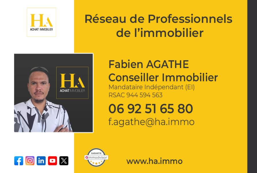 A VENDRE MAISON F4 LE TAMPON (17e KM) Située dans le quartier du 17e km au Tampon, cette maison F4 de 70 m² habitables sur un terrain de 505 m² clôturé est idéale pour une famille en quête de tranquillité et d'espace. Elle dispose de 3 chambres, d'un séjour lumineux, d'une cuisine équipée, et d'une salle de bains avec WC séparés. Travaux de rafraîchissement à prévoir : parfait pour personnaliser votre futur chez-vous. Proche de toutes commodités avec un accès rapide aux axes routier, de nombreux commerces et écoles vous garantira une facilité aux quotidiens. Honoraires charge acquéreur 16 800 euros Pour tout renseignement contactez Fabien AGATHE [coordonnées réservées] RSAC 944 594 563 Alexandre ROBERT [coordonnées réservées] RSAC 819 533 811 Bien non soumis au DPE Les informations sur les risques naturels auxquels ce bien peut être exposé sont disponibles sur le site: www.georisques.gouv.fr Réseau HA.IMMO, votre partenaire immobilier (6.32 % honoraires TTC à la charge de l'acquéreur.) Fabien AGATHE (EI) Agent Commercial - Numéro RSAC : - .