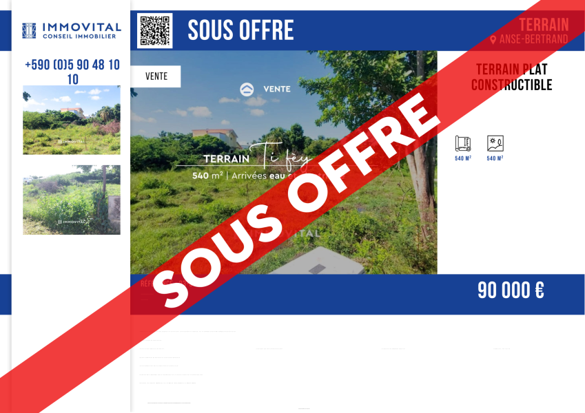 IMMOVITAL a le plaisir de vous proposer ce terrain plat, constructible et viabilisé, sur la commune d'Anse-Bertrand pour la concrétisation de votre projet de construction.