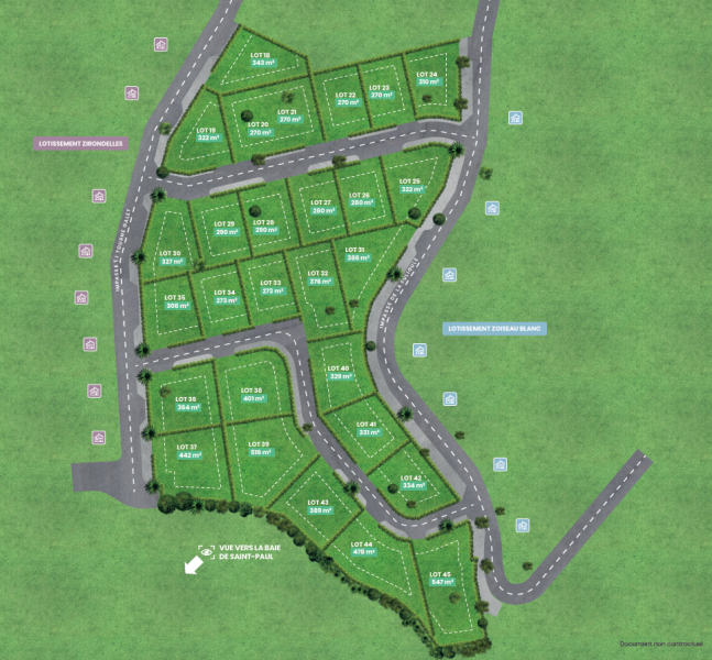 Entre Savanna et la Plaine Saint Paul, CBo Territoria vous présente le lotissement Ti Polka 2 et vous propose une parcelle de 376m2 viabilisée et prête à bâtir qui n'attend plus que votre future maison.