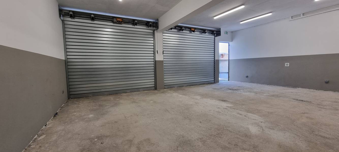 LOCAL neuf en Zone Artisanale d'Activité, sur 2 niveaux, comprenant au rez-de-chaussée un entrepôt brut avec douche et wc, fermé par 2 rideaux métalliques électriques, et à l'étage un grand bureau climatisé avec espace kitchenette et salle d'eau.