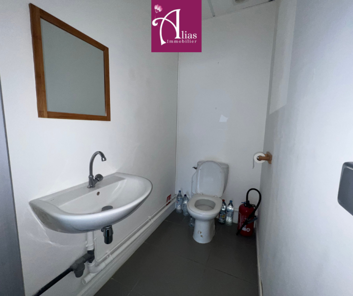 Ce local se compose d'un espace principal modulable, d’un bloc sanitaire et d’un coin kitchenette/repos, offrant une configuration adaptée aux bureaux ou activités administratives.