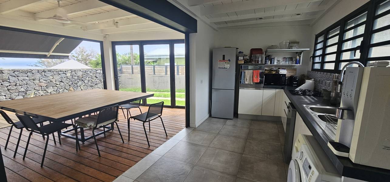 * Grand salon, cuisine ouverte fonctionnelle, large varangue (baies vitrées en accordéon)