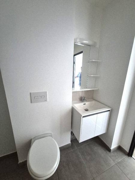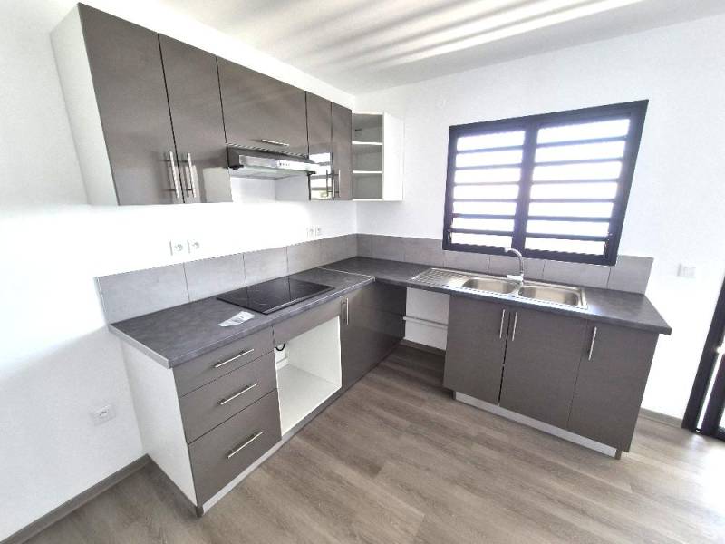 Appartement de type F2 au 1er étage, d'une superficie habitable de 44.74 m2 et varangue de 9.70 m2 offrant une entrée, une chambre avec brasseur d'air, une salle d'eau avec wc, un séjour avec cuisine américaine équipée ouvrant sur la varangue.