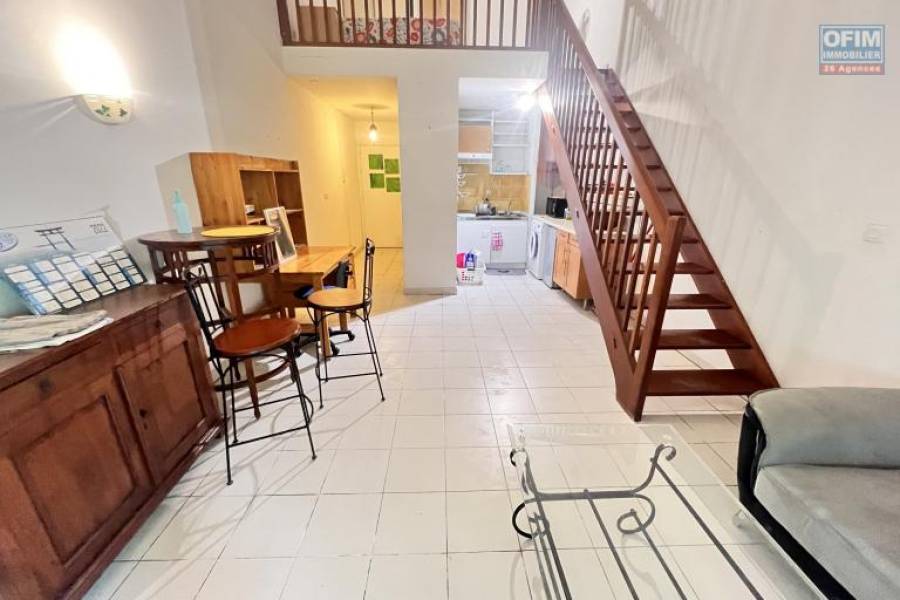 Meublé : Ofim Sainte Denis vous propose à la location cet appartement de type F1 meublé sur la résidence ESPLANADE  Cet appartement comprend: une cuisine équipée avec frigo, machine a laver, plaque de cuisson,  micro onde, vaisselle .  Une pièce principale séjour avec canapé table deux chaises , télévision, meuble bibliothèque. une mezzanine avec un lit double, placard et une salle de bain. varangue, place de parking, ascenseur.  Il se situe après le CHU  de bellepierre le loyer est de 614,79€ hors charges. et les charges de 60€  Contacter Elodie ZITTE, au [coordonnées réservées]   5A71788, Numéro de mandat: 1807, Honoraires à la charge du locataire: 556 € TTC  Tél. commercial: [coordonnées réservées]