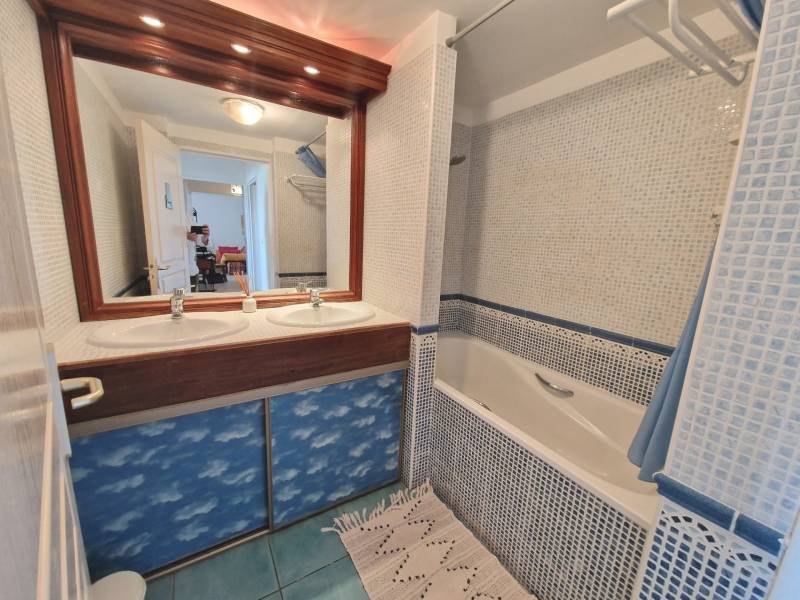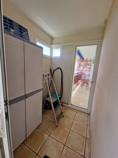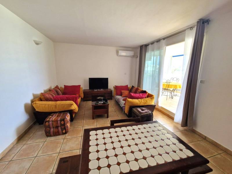 Ce bel appartement offre un hall d'entrée avec placard, un séjour - salle à manger climatisé ouvert sur une varangue, une cuisine équipée (plaques, hotte, four, frigo, meubles bas et hauts, lave linge), deux chambres climatisées avec placard donnant sur la 2ème varangue, une salle de bains baignoire et double vasque, un wc séparé.