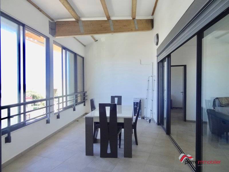 L'intérieur se constitue d'une cuisine semi-équipée ouverte, d'un séjour de 31 m2, 3 chambres climatisées avec placards dont une suite avec salle d'eau attenante, salle d'eau et WC séparés.