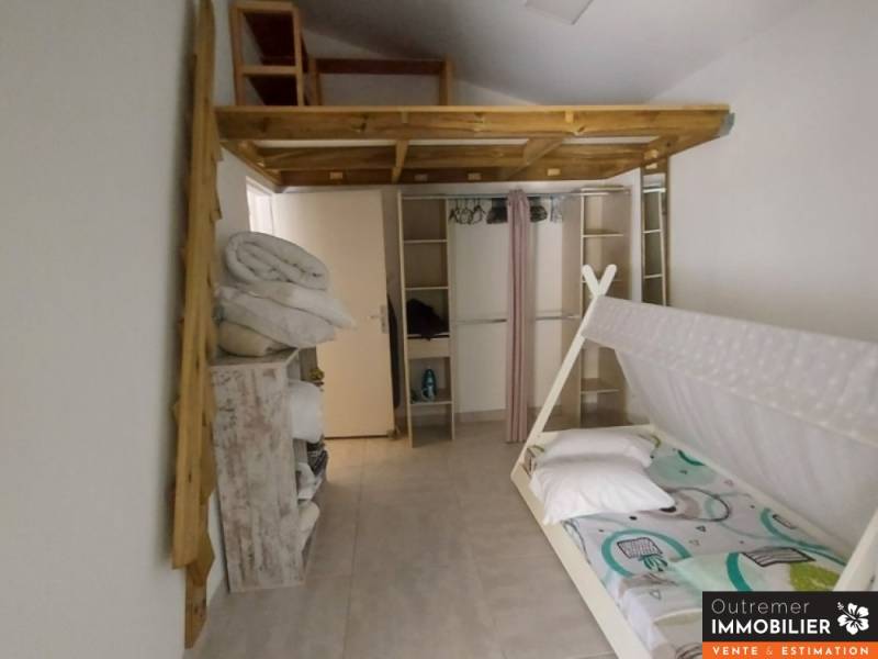 Il se compose d’un vaste séjour lumineux avec cuisine entièrement équipée, d’une chambre principale ouvrant sur la varangue, d’une seconde chambre ou bureau avec mezzanine de rangement, et d’une salle de bain fonctionnelle.