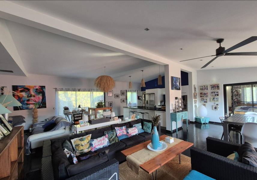 ARH Immobilier vous propose à la location cette superbe villa meublée de plain-pied, édifiée en 2012, d'une superficie habitable de 175 m² sur un terrain clos et arboré de 695 m².