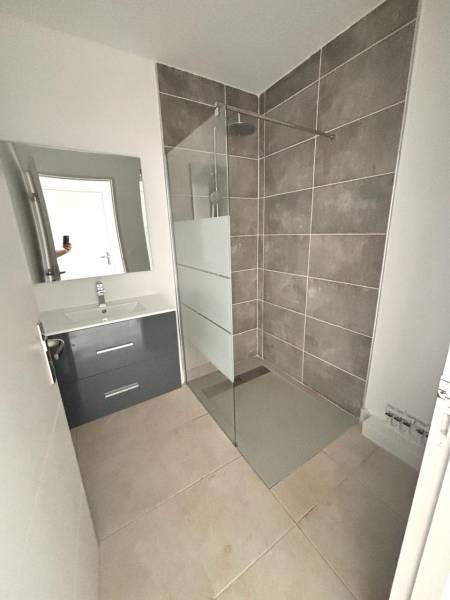 -au RDC: un séjour traversant ouvert sur cuisine équipée, une salle d'eau avec douche à l'italienne et WC
