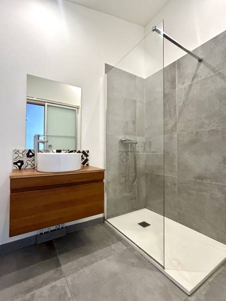 Au 1er étage: 2 chambres climatisées et dont une avec dressing, une salle d’eau avec douche à l’italienne.