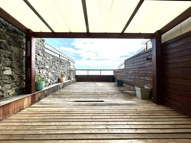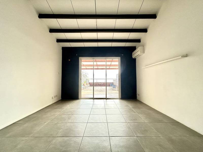 T3 duplex de 69.23 m2 comprenant au RDC: une entrée privative avec cellier extérieur, un grand séjour climatisé, une cuisine ouverte, une arrière cuisine/buanderie avec rangements, un WC avec lave-mains, une grande terrasse semi-couverte de 40m2 sans vis-à-vis et avec vue mer