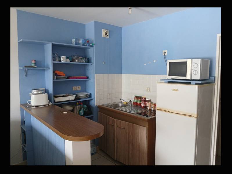Nous vous proposons à la location un studio entièrement meublé au 1er étage de la Résidence les Jardins de St Leu.
