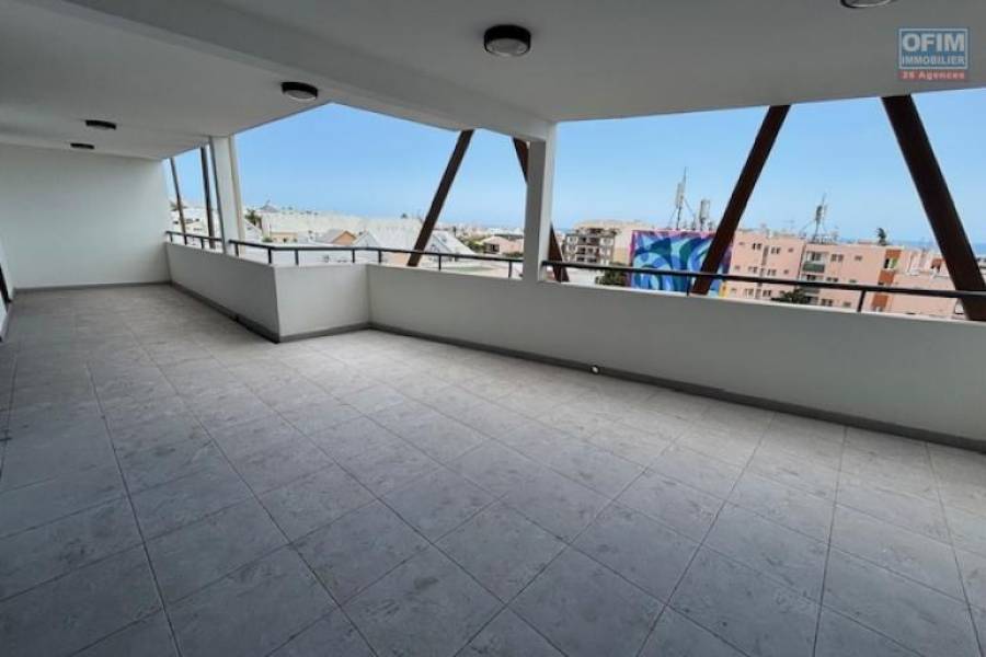 A vendre T4 de 97m2 plus très belle varangue avec vue dégagée de 40m2 sur la ville et l'océan. Cet appartement traversant, situé au 4e étage d'une résidence neuve, se compose de 3 grandes chambres avec brasseur d'air, dont une suite parentale (sdd avec wc, dressing), une 2ème salle de douche avec wc, d'une grande piece de vie (43,88m2) donnant sur la magnifique varangue, et cuisine aménagée, ouverte . Aucun vis à vis, vue dégagée, grandes baies vitrées, très lumineux, brasseurs d'air dans toutes les pieces. . Une place de parking attribuée en sous sol . A 2 pas du centre ville, des collèges, écoles, lycées, commerces de proximité, lignes de bus.....cet appartement saura vous séduire par ses prestations et son emplacement en centre ville de St Denis. Frais de notaire réduits . Idéal pour une résidence principale ou investissement (possibilité de défiscaliser en loi Girardin IS). . POUR INFOS ET VISITE ME CONTACTER AU [coordonnées réservées] (KARINE) . [coordonnées réservées] . Honoraires à la charge du vendeur 22A71626, Numéro de mandat: 505 Tél. commercial: [coordonnées réservées]